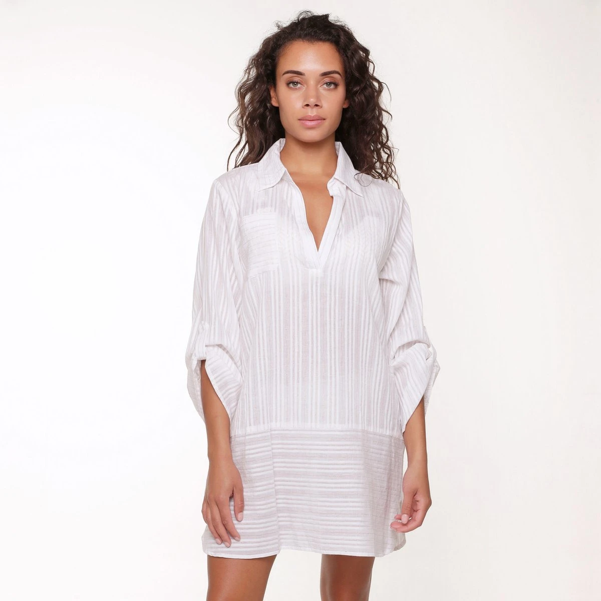 Glam Tuniek Wit 40 van het merk LingaDore – De Glam Tuniek Wit van LingaDore is een soepel vallende tuniek perfect te combineren met alle bikinis of badpak. Deze tuniek is gemaakt van 100% katoen en is daarom heel luchtig draagbaar. De mouwen kan je omslaan en vast knopen. De tuniek is afgewerkt met een koper lurex draad. De subtiele glitter in het draad maakt de tuniek helemaal af! Comfortabel en perfect te combineren met bijna elke badkleding. Dezelfde tuniek is ook verkrijgbaar in het zwart. De Glam Tuniek Wit heeft een borstzakje een v-hals en een kraag. Materiaal: 100% Katoen. Ons wasadvies voor lingerie en badmode is altijd handwas. Tip: bestel voor je delicate was een heerlijke fles SOAK , hiermee kun je je was in slechts 15 minuutjes laten “soaken” en bespaar je ook nog eens veel water. LingaDore biedt lingerie en badmode voor elk lichaamstype. Maak je keuze uit onze triangel bikini’s, strapless bikini’s, one shoulder bandeau bikini’s, halternek bikini’s en tankini’s. Van voorgevormd tot niet-voorgevormd, met afneembare of vaste bandjes, beugel of geen beugel; shop en combineer naar hartelust. Bij elke bikinitop vind je uiteraard een bijpassend broekje. Kies uit verschillende taillehoogtes, pasvormen, maten en details. Extra handig als je boven en onder niet dezelfde maat hebt. Het assortiment bevat zowel slips als hipsters, strikbroekjes en high waist broekjes. Voel je elegant en op je gemak in jouw eigen originele stijl. De maatvoering van de bikini slips van LingaDore is van maat 36 tot en met maat 44. Wij laten graag elke vrouw stralen!
